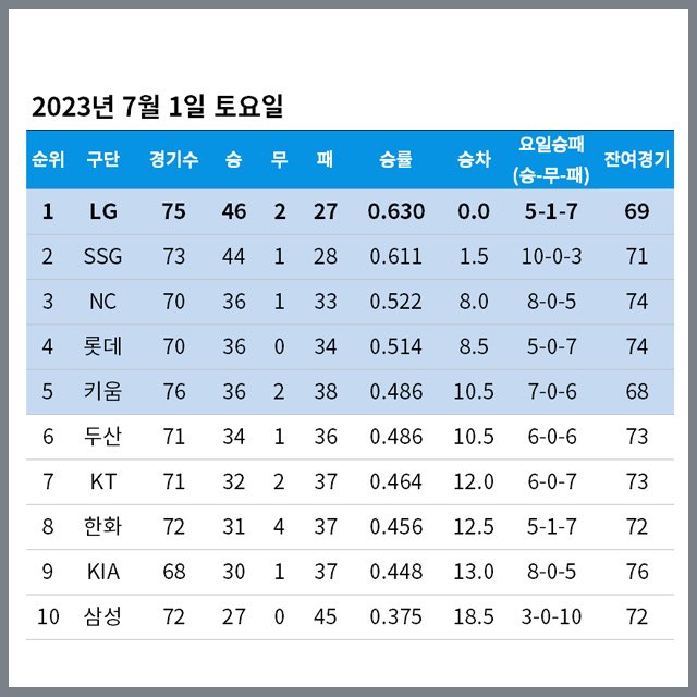 7월의 첫날 경기 리뷰와 순위 확인 해볼게요!