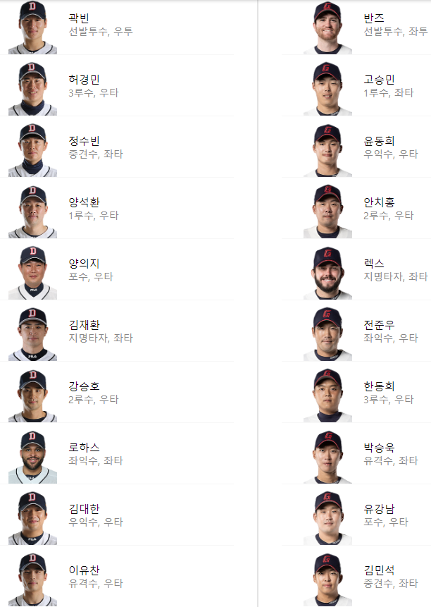 선발 라인업: