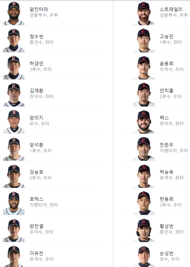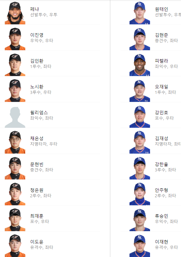 선발 라인업: