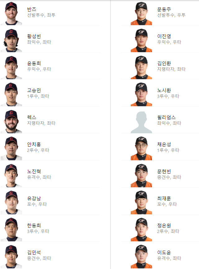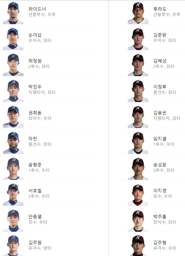 선발 라인업: