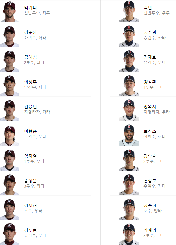 키움 히어로즈 vs 두산 베어스