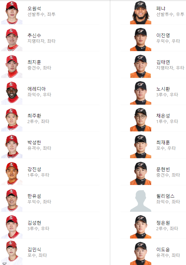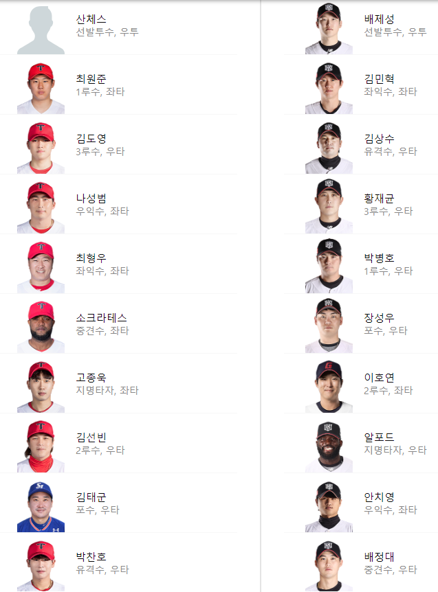 선발 라인업: