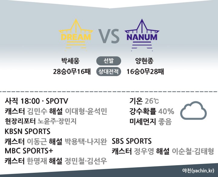 | 선발 투수 | 박세웅 | 양현종 |