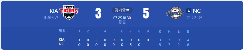 7월 25일 화요일 경기 리뷰와 순위 확인해 볼게요!