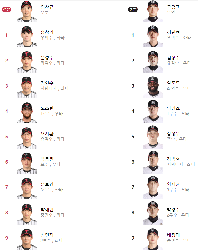 선발 라인업: