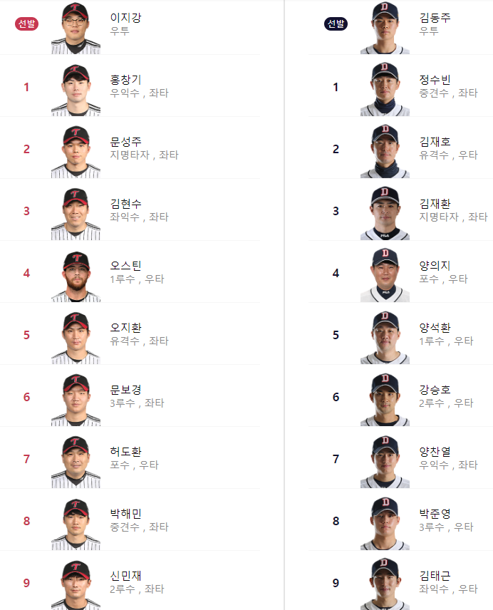 선발 라인업: