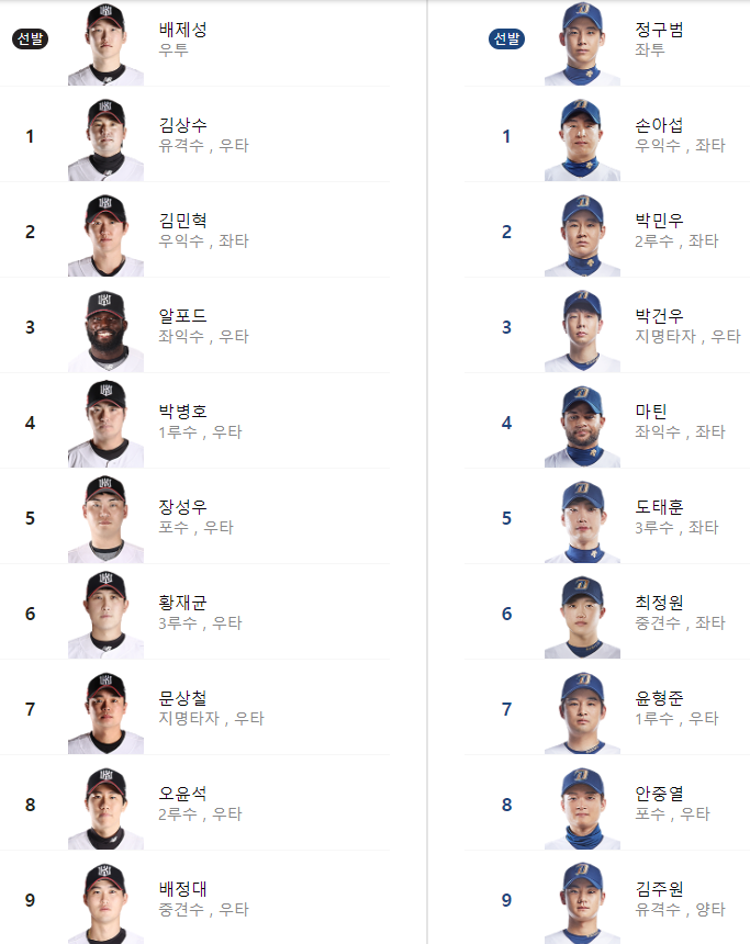 선발 라인업: