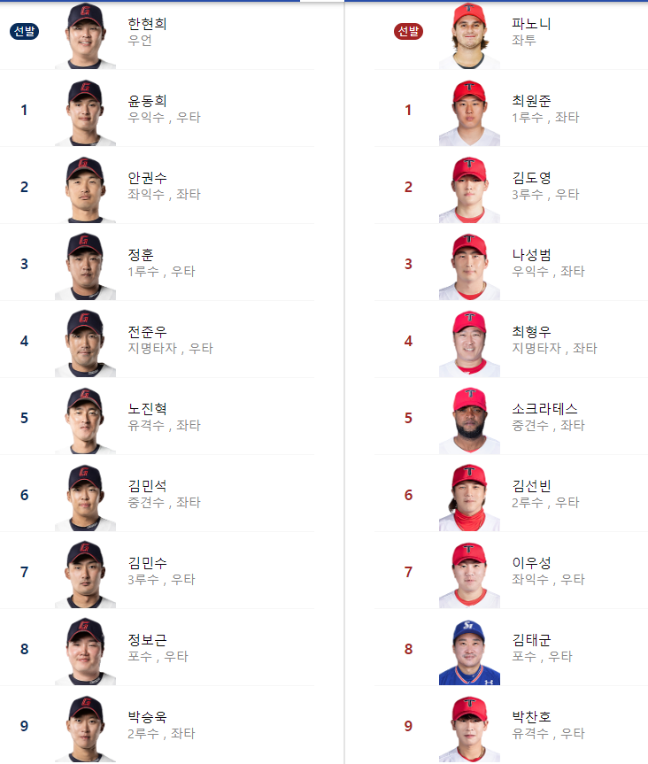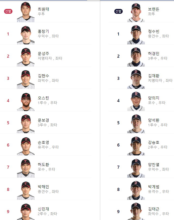선발 라인업: