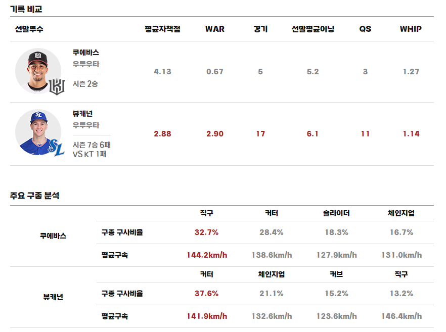 KT 위즈 vs 삼성 라이온즈