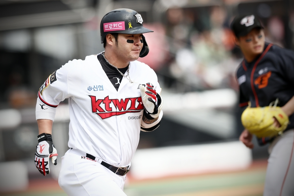 이강철 감독 등 KT의 코치진과 선수단 전원은 이날 수원 KT위즈 파크에서 열린 한화 이글스와의 홈경기에서 헬멧에 노란색 리본을 부착하고 경기에 임했습니다.