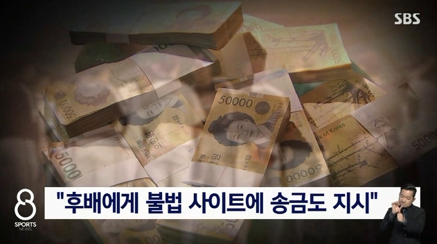 SBS 보도에 따르면 이천웅선수는 후배에게 불법 사이트에 송금도 지시했다고 합니다.