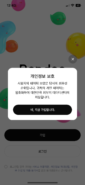 가입을 클릭 후 네, 지금 가입합니다와 서비스 약관 동의 누릅니다.