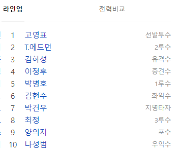 다만 좌투수를 대비해 박건우 선수가 선발 출장을 했던 만큼 지명타자의 자리를 어떤 선수가 가져 갈지 궁금해지네요.